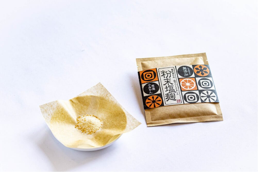 さわやかな桜島小みかんのパウダーが入った粉末塩麹です。